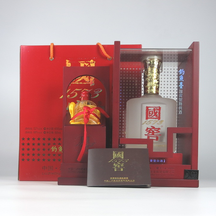 为非常少见的TG国窖1573礼盒,内装质感十足的磨砂瓶650毫升52度国窖和珍稀68度50毫升国窖原窖酒各一瓶,不仅展现了当代工匠的精湛技艺,更体现了现代科技之独特魅力,尽享品饮之真情趣。品质至纯,内外兼修,又经12年瓶贮陈熟,是您可遇不可求的稀缺收藏名品。
