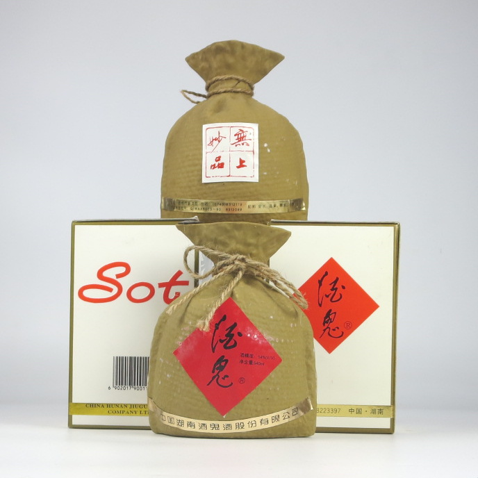 兼有浓、清、酱三大白酒基本香型的特征,一口三香,前浓、中清、后酱。拍品为98和99年经典大酒鬼酒各一瓶,酒质有口皆碑,再经20余年陈熟,品质、口感更佳,饮用则畅快淋漓,馈赠则让人欣然,收藏则妙趣横生。