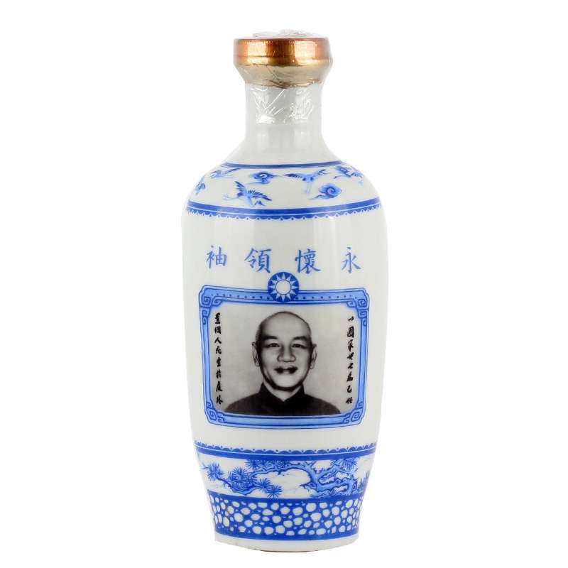 此款为蒋介石九稚诞辰纪念酒,在蒋介石祝寿酒系列中,只有本款有蒋介石肖像,辩识度极高。正面有蒋介石照片,背面有蒋介石题字,极具收藏价值。金门高粱酒可谓为中国白酒文化长河里支脉之一,承袭古法纯粮固态酿制工艺,具有酒质透明、其香、醇、甘、冽优良质量闻名遐尔,并一向以优质产品着称。