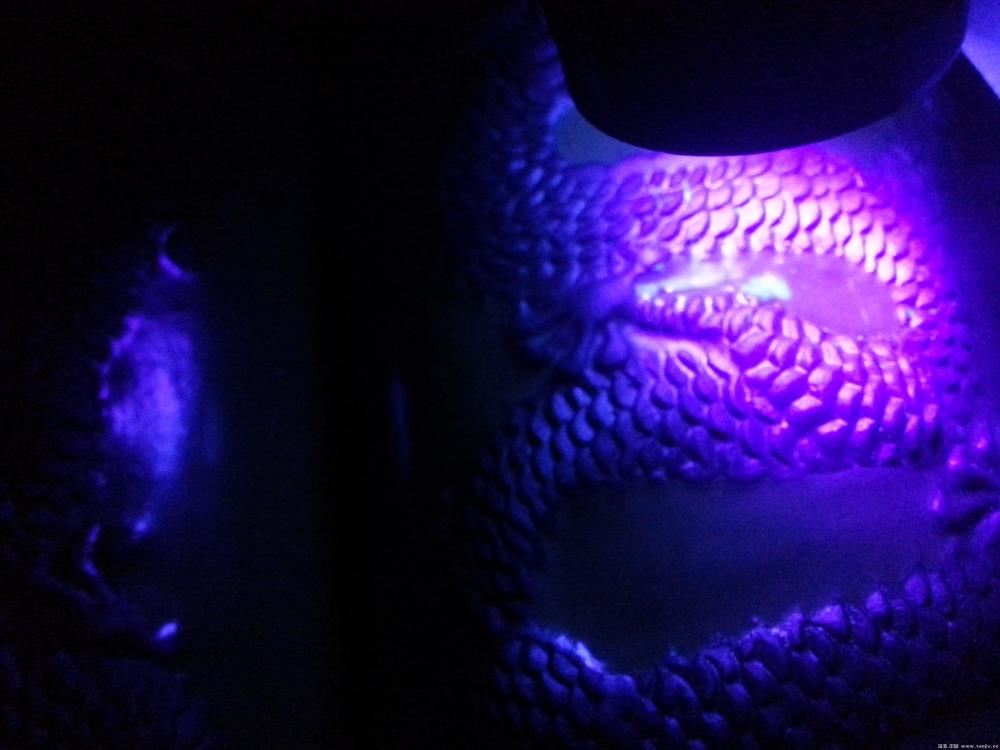 有注胶点 白天看不到 晚上用紫光灯能看到荧光点