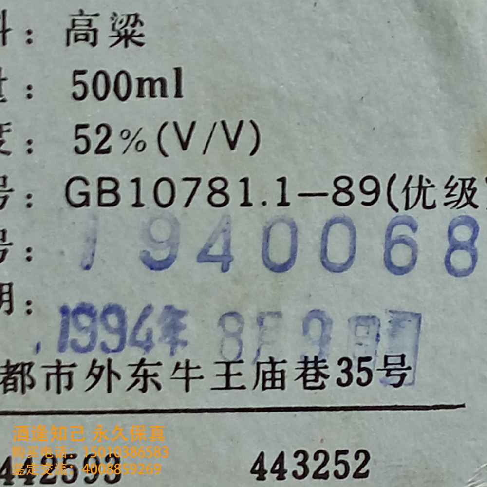 主题 : 94年全兴大曲2瓶500ml/52°