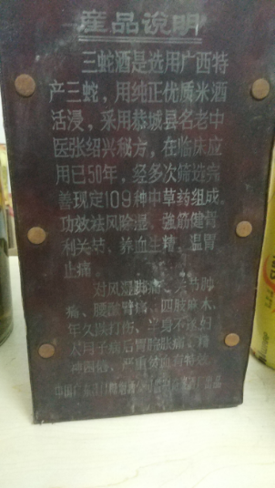 三蛇酒大约5公斤(1500元,中铁快运)
