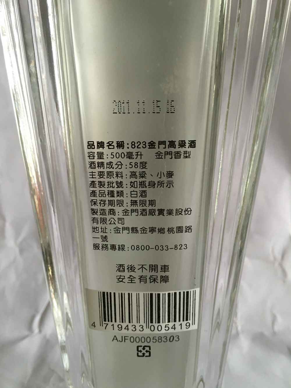 品牌名稱:823金門高粱酒