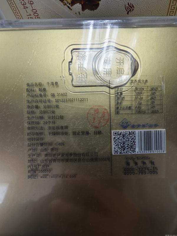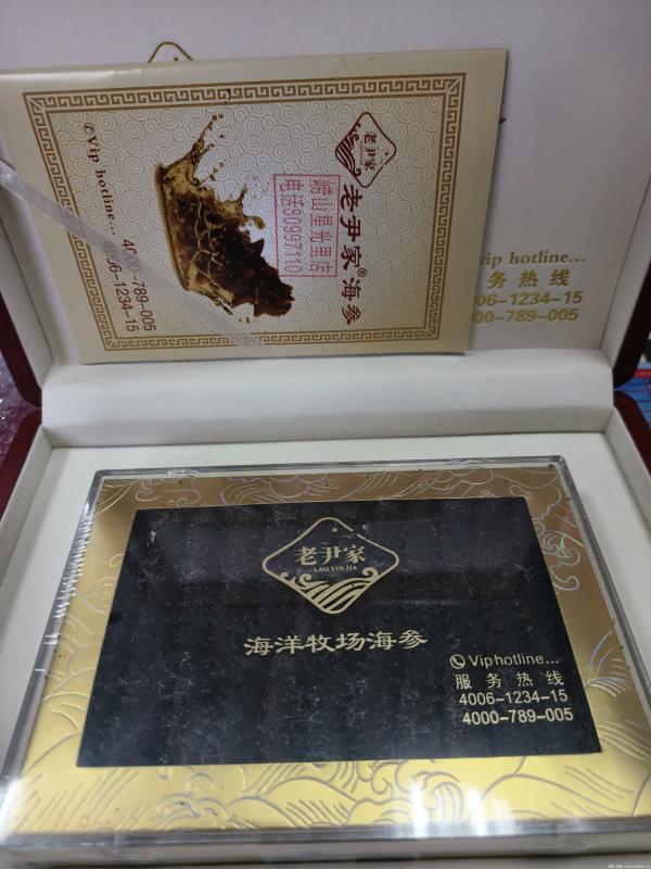 1、老尹家海参一盒,250g,2004年8月,包装齐全,750全包不议。